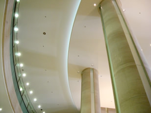 非常に大きな開口部、複雑な屋根のつくり等、とても興味深い建物でした。